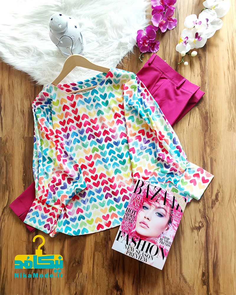 شومیز یقه پاپیون دار قلب رنگین کمان مشکی